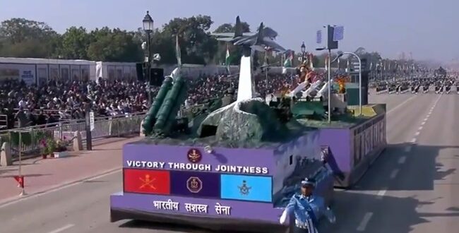 नई दिल्ली : भारतीय सशस्त्र बलों की झांकी में ‘ऑपरेशन सिंदूर’ के दौरान तीनों सेनाओं की उस एकजुटता को दिखाया गया, जिसकी बदौलत सीमा पार के आतंकी अड्डों और पाकिस्तान के एयरबेस को नष्ट किया गया था। परेड के दौरान ‘ऑपरेशन सिंदूर: संयुक्तता से विजय’ शीर्षक से झांकी पेश की गई। इस झांकी ने राष्ट्र के विकसित सैन्य सिद्धांत का सशक्त और आधिकारिक प्रतिनिधित्व किया, जो सटीकता, एकीकरण और स्वदेशी परिवर्तन का प्रतीक है। इस झांकी के जरिये यह बताने की कोशिश की गई कि भारत में आत्मनिर्भर सैन्य शक्ति का युग आ चुका है।भारतीय सशस्त्र बलों की झांकी में ऑपरेशन सिंदूर ने आत्मनिर्भर भारत की बढ़ती ताकत और विकसित भारत@2047 की ओर देश की अटूट यात्रा का उदाहरण पेश किया। झांकी ने तीनों सेनाओं के तालमेल और सिलसिलेवार चित्रण के जरिए इस कहानी को जीवंत किया। शुरुआती भाग में भारतीय नौसेना की समुद्री ताकत को दिखाया गया, जिसमें समुद्र पर कंट्रोल और दुश्मन को किसी भी ऑपरेशनल आजादी से निर्णायक रूप से रोकना शामिल है। यह सहजता से भारतीय सेना के दृढ़ संकल्प को दर्शाता है, जिसमें एम-777 अल्ट्रा-लाइट हॉवित्जर सटीक और सुनियोजित मारक क्षमता से शत्रु के इरादों को विफल कर देते हैं। इनके पीछे आकाश वायु रक्षा प्रणाली खड़ी है, जो भारत की बहुस्तरीय और एकीकृत वायु रक्षा कवच तथा अभेद्य हवाई क्षमता का प्रतीक है।झांकी के केंद्र में हमले की कहानी सामने आती है, जो भारत के राष्ट्रीय सुरक्षा सिद्धांत के ‘न्यू नॉर्मल’ को दिखाती है। इसमें तेजी से जवाब देना, संयमित तरीके से आगे बढ़ना और बिना किसी चूक के सटीकता के साथ हमला करना शामिल है। झांकी में यह भी दिखाया गया कि एक हारोप मिसाइल ने दुश्मन के हवाई रक्षा रडार को कैसे नष्ट कर दिया, जो मानव रहित सटीक युद्ध में भारत की बढ़ती बढ़त को दर्शाता है। इसके बाद स्कैल्प मिसाइलों से लैस एक राफेल विमान ने आतंकी ढांचे पर सटीक हमला किया। एसयू-30 एमकेआई ने ब्रह्मोस सुपरसोनिक क्रूज मिसाइल दागकर मजबूत विमान आश्रयों को नष्ट कर दिया, जिससे हमले की गति और तेज हो गई, यह भारत की गहरी, तीव्र और त्रुटिहीन आक्रमण करने की क्षमता का स्पष्ट प्रदर्शन था।यह ऑपरेशन भारत के इंटीग्रेटेड एयर डिफेंस नेटवर्क की बढ़ी हुई पहुंच के साथ अपने चरम पर पहुंचता है। एस-400 सिस्टम 350 किलोमीटर की सबसे लंबी दूरी पर ऑपरेशन को अंजाम देते हुए दुश्मन के एयरबोर्न अर्ली-वार्निंग प्लेटफॉर्म को बेअसर करके साफ संदेश देता है कि भारत सबसे पहले पता लगाता है, सबसे पहले फैसला करता है और सबसे पहले खत्म करता है। ऑपरेशन सिंदूर का हर चरण एकजुटता और इंटीग्रेशन की परिपक्वता को दिखाता है, जिसमें सभी क्षेत्रों में इंटेलिजेंस को मिलाकर टारगेट सटीकता से चुने गए और