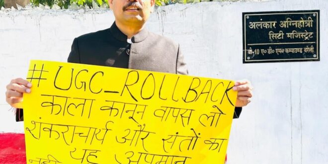 बरेली : उत्तर प्रदेश के जनपद बरेली के सिटी मजिस्ट्रेट एवं 2019 बैच के पीसीएस अधिकारी अलंकार अग्निहोत्री ने सोमवार को तत्काल प्रभाव से अपने पद से इस्तीफा दे दिया है। उन्होंने बरेली में मीडिया के सामने आकर अपने त्यागपत्र की जानकारी दी।अलंकार अग्निहोत्री ने अपने इस्तीफे के पीछे दो प्रमुख कारण बताए हैं। पहला उन्होंने उन्होंने विश्वविद्यालय अनुदान आयोग (यूजीसी) के नए नियमों का विरोध किया है और दूसरा, प्रयागराज में ज्योतिर्मठ के शंकराचार्य स्वामी अविमुक्तेश्वरानंद के शिष्यों के साथ कथित तौर पर बदसलूकी, उनकी चोटी खींचे जाने का आरोप लगाया है।उन्हाेंने कहा कि प्रयागराज में प्रशासन के लाेगाें ने स्वामी अविमुक्तेश्वरानंद व उनके शिष्य बटुक ब्राह्मणों की चाेटी पकड़ कर मारा-पीटा गया। ब्राह्मण समाज की सांस्कृतिक सम्मान चाेटी है और उसे अपमानित करना अपराध है।अग्निहोत्री ने कहा कि प्रदेश में ब्राह्राण समाज के सांसदों और विधायकों को त्यागपत्र दे देना चाहिए। अगर ऐसा नहीं करते हैं ताे उन्हें समाज कभी माफ नहीं करेगा। वे साेचते हैं कि विराेध न करके चुनाव जीत जाएंगे, कभी नहीं जीत पाएंगे। उन्होंने आरोप लगाया कि पूरे प्रदेश में ब्राह्मण समाज के खिलाफ अभियान चलाया जा रहा है।अग्निहोत्री ने कहा कि जब सरकारें समाज और देश को बांटने वाली नीतियों को आगे बढाएं तो उनका विरोध करना जरूरी है। उन्होंने यूजीसी के नए नियमों को “काला कानून” बताते हुए कहा कि यह कॉलेजों के शैक्षणिक माहौल को जहरीला बना रहे हैं और इसलिए यूजीसी को चाहिए इसे तत्काल वापस ले। उन्होंने अपना त्यागपत्र ईमेल से बरेली के जिलाधिकारी को भेज दिया है। उन्हाेेंने अपने त्यागपत्र दिए जाने के कारणाें की जानकारी दी और अपनी नाराजगी लिखे पाेस्टर के साथ फाेटाे भी खिंचाई। फिलहाल इस संबंध में जिला प्रशासन की ओर से अभी किसी प्रकार की टिप्पणी नहीं की गई है।—————