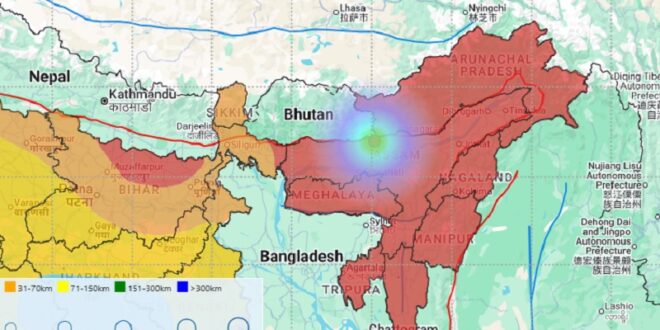 गुवाहाटी : असम के उदालगुड़ी जिले में सोमवार की देर शाम को मध्यम तीव्रता के भूकंप के झटके महसूस किये गये।मिली जानकारी के अनुसार, असम के उदालगुड़ी जिले में 05 बजकर 40 मिनट 55 सेकेंड पर भूकंप का झटका महसूस किया गया। रिक्टर स्केल पर इसकी तीव्रता 3.4 दर्ज की गयी। भूकंप के चलते कहीं से किसी भी तरह के नुकसान की खबर नहीं है। भूकंप का झटका महसूस होते ही लोग अपने घरों से बाहर निकल आए। लोगों में दहशत फैल गयी।भारतीय सिस्मोलॉजी केंद्र से मिली जानकारी के अनुसार भूकंप का केंद्र उदालगुड़ी जिले में 5 किलोमीटर जमीन में नीचे स्थित था। भूकंप का एपीक सेंटर 26.80 उत्तरी अक्षांस तथा 92.07 पूर्वी देशांतर पर स्थित था।——————-