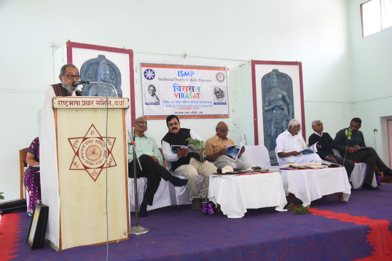 वर्धा (टेलीस्कोप टुडे संवाददाता)। इंटेलेक्चुअल सोसाइटी ऑफ मीडिया प्रोमोटर्स की सकारात्मक, निरपेक्ष व स्वतंत्र अभिव्यक्ति में विरासत ही मार्गदर्शक पर आयोजित दो दिवसीय द्वितीय वर्धा एजीएम विरासत मीडिया प्रमोटर्स संगोष्ठी के उद्घाटन में मध्य प्रदेश सर्वोदय मंडल एवं ग्राम सेवा मंडल, वर्धा के अध्यक्ष चिन्मय मिश्र ने कहा कि भाषा दुनिया का सबसे सशक्त उपकरण है। संगोष्ठी का उद्घाटन राष्ट्रभाषा प्रचार समिति के सभागार में शनिवार को किया गया। कार्यक्रम की अध्यक्षता आईएसएमपी के चेयरमैन चंद्रशेखर ने की।