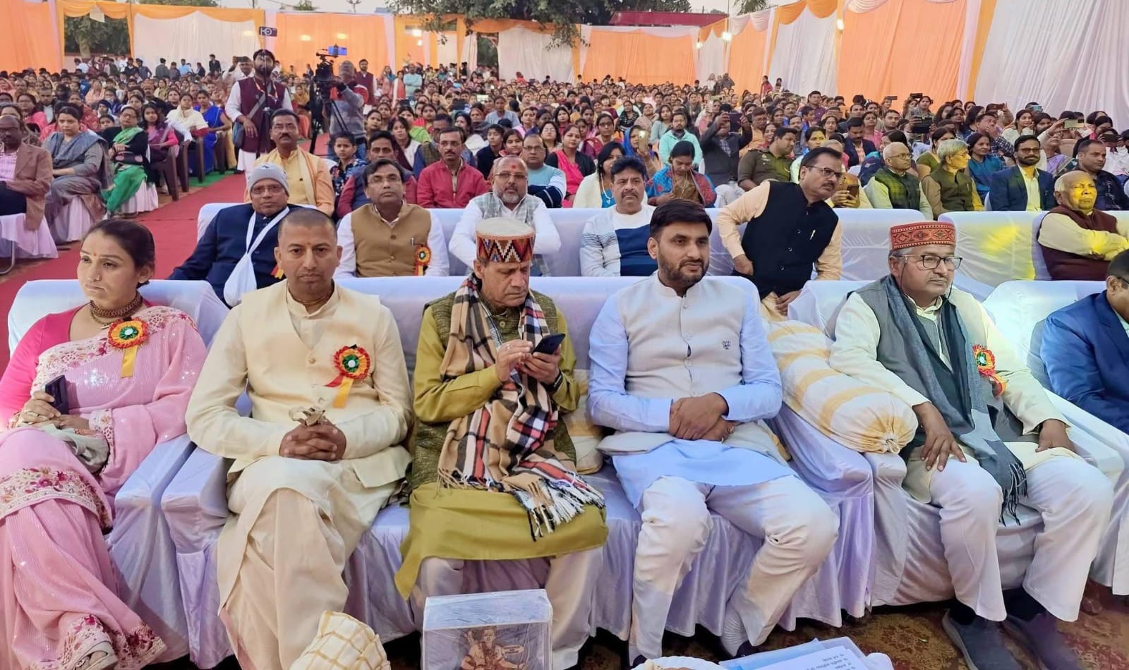 मुख्य अतिथि अपरिमेय श्यामदास, विद्याभारती के संरक्षक पद्मश्री ब्रह्मदेव शर्मा ‘भाई जी’, सह क्षेत्र प्रचार प्रमुख मनोजकान्त, क्षेत्रीय संगठन मंत्री हेमचन्द्र व युवा भाजपा नेता नीरज सिंह ने माँ सरस्वती के समक्ष दीप प्रज्ज्वलित कर कार्यक्रम का शुभारम्भ किया।
