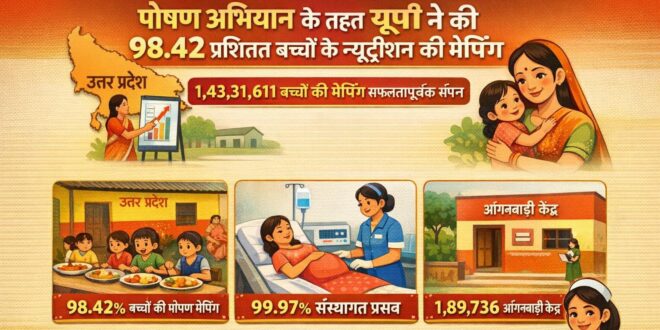 लखनऊ (टेलीस्कोप टुडे संवाददाता)। उत्तर प्रदेश ने मिशन सक्षम आंगनवाड़ी और पोषण 2.0 के तहत महिलाओं और बच्चों की भलाई के कामों में काफी तरक्की की है। इसमें 98.42% से ज्यादा बच्चों को पोषण सेवा के लिए मैप किया गया और 99.97% इंस्टीट्यूशनल डिलीवरी रिकॉर्ड की गईं।