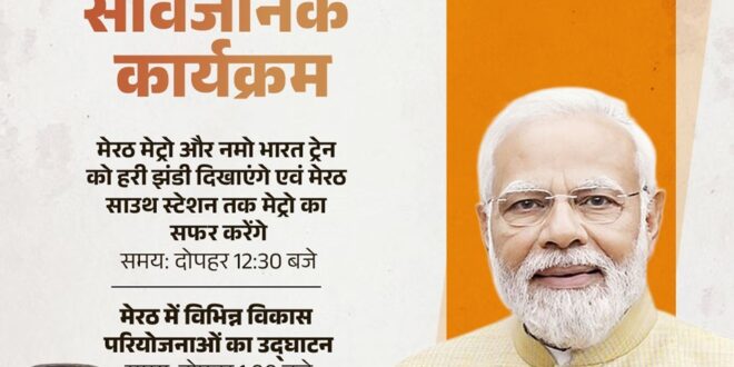 प्रधानमंत्री मोदी आज रहेंगे उप्र के दौरे पर, दिल्ली–मेरठ नमो भारत कॉरिडोर और मेरठ मेट्रो का करेंगे शुभारंभ