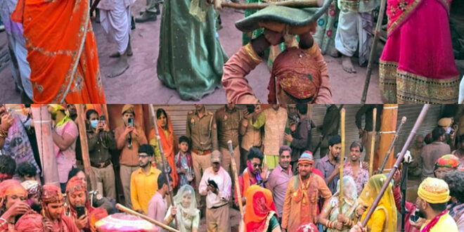 मथुरा : राधारानी की नगरी बरसाना की रंगीली गली में बुधवार रंगीली होली शुरू होते ही भक्ति, प्रेम और रंगा का अद्भुत संगम दिखाई दिया। हुरियारिनों के हाथों में सजे लठ और हुरियारों की ढालों के बीच परंपरागत लठामार होली का अलौकिक दृश्य देख श्रद्धालु भावविभोर हो उठे। रंगीली होली के दर्शन कर श्रद्धालु खुद को धन्य मानते नजर आए। रंगीली गली में उमड़े श्रद्धालु हाथ जोड़कर राधारानी से मनोकामना मांगते दिखे। श्रद्धालुओं पर हेलीकाॅप्टर से फूलाें की बरसा की गई।बरसाना में बुधवार शाम होली के रसिया की जय के गगनभेदी जयकारों के बीच विश्व प्रसिद्ध लठामार होली हर्षोल्लास के साथ सम्पन्न हो गई। रंगीली गली में नंदगांव के हुरियारों और बरसाना की हुरियारिनों के बीच परंपरागत लठामार होली का अद्भुत दृश्य देखने को मिला। ढालों पर बरसते लठ और उड़ते गुलाल के बीच होरी के रसिया गूंजते रहे और पूरा बरसाना भक्ति और उल्लास में डूबा नजर आया।मंदिर से लेकर रंगीली गली तक श्रद्धालुओं की भारी भीड़ उमड़ी रही। लठामार होली अपने चरम पर पहुंचते ही पूरा वातावरण होली के रसिया की जय और राधे राधे के जयघोष से गूंज उठा। ढालों पर पड़ती लाठियों और होरी की तानों ने सदियों पुरानी परंपरा को सजीव कर दिया। श्रद्धालु ऊंचे स्थानों और छतों पर खड़े होकर इस अलौकिक होली के दर्शन करते नजर आए और हर प्रहार पर जयकारों की गूंज तेज होती चली गई। रंगीली गली में गुलाल और रंगों की ऐसी बरसात हुई कि पूरा क्षेत्र राधा रानी के रंग में रंगा नजर आया। श्रद्धालु परिक्रमा करते, नाचते गाते और एक दूसरे पर गुलाल उड़ाते दिखाई दिए। कई भक्त हाथ जोड़कर रंगीली गली की ओर निहारते रहे तो कई ने इस होली को राधा रानी का साक्षात प्रसाद मानकर अपने माथे पर गुलाल लगाया।दूर-दराज से आए श्रद्धालुओं ने कहा कि लठामार होली के दर्शन जीवन का सौभाग्य हैं और बरसाना आकर उनकी मनोकामना पूर्ण हुई। देर शाम तक होली का उल्लास बना रहा और परंपरागत रीति के अनुसार लठामार होली का समापन हुआ। होली के रसिया की जय के जयकारों के बीच श्रद्धालु भावविभोर होकर लौटते नजर आए। कई ताे रंगीली गली की मिट्टी को प्रसाद मानकर अपने साथ ले गया। बरसाना से लौटते समय भक्तों के चेहरों पर थकान जरूर थी, लेकिन आंखों में लठामार होली के दिव्य दर्शन की चमक साफ दिखाई दे रही थी। लठामार होली के उल्लास के बीच रंगीली गली पहुंचे नंदगांव के हुरियारों का इस बार अनोखे अंदाज में स्वागत किया गया। आसमान से बरसी गुलाब की पंखुड़ियों ने पूरे माहौल को भक्तिरस और उल्लास से सराबोर कर दिया। हेलीकॉप्टर से की गई पुष्प वर्षा को देखकर श्रद्धालु भावविभोर हो उठे और चारों ओर जयकारों की गूंज सुनाई देने लगी। जैसे ही नंदगांव के हुरियारे रंगीली गली प