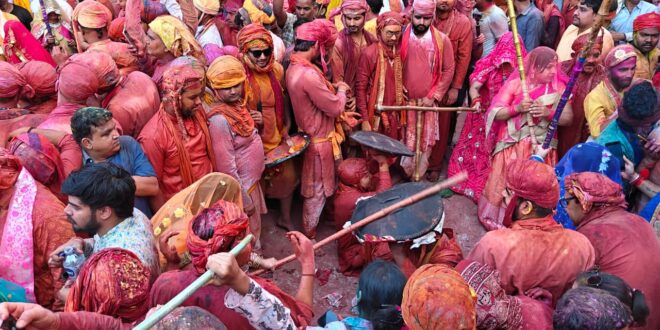 बरसाना में रंगोत्सव 2026 की धूम : नंदगांव के हुरियारों पर बरसीं प्रेम की लाठियां, उड़ा गुलाल