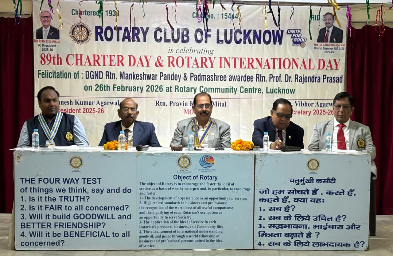लखनऊ (टेलीस्कोप टुडे संवाददाता)। रोटरी क्लब ऑफ लखनऊ द्वारा गुरुवार को निराला नगर स्थित रोटरी भवन में 89वां चार्टर डे एवं रोटरी इंटरनेशनल के फाउंडेशन डे का भव्य आयोजन किया गया।