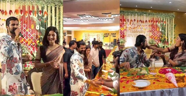 शादी के बाद लगातार सुर्खियों में बने रश्मिका मंदाना और विजय देवरकोंडा ने न सिर्फ फैंस से मुलाकात की, बल्कि उन्हें अपने हाथों से खाना परोसकर सबका दिल जीत लिया। सोशल मीडिया पर सामने आए वीडियो में नवविवाहित जोड़ा अपने चाहने वालों के साथ समय बिताता नजर आ रहा है। इस दौरान दोनों ने अपने फैंस के लिए एक खास मिलन समारोह का आयोजन किया।यह आयोजन 3 मार्च को हैदराबाद में रखा गया, जहां बड़ी संख्या में प्रशंसक शामिल हुए। कार्यक्रम स्थल को फूलों से सजाया गया था और प्रवेश द्वार पर ‘विरोश’ लिखा हुआ था, जो इस जोड़ी के लिए फैंस की ओर से दिया गया लोकप्रिय नाम है। समारोह के दौरान दोनों ने अपने रिश्ते को लेकर खुलकर बातें भी कीं, जिससे माहौल और भी खास बन गया।वीडियो में रश्मिका और विजय की सादगी और अपनापन साफ झलकता है। फैंस के मुताबिक, दोनों ने पूरे दिल से अपने चाहने वालों का स्वागत किया और उनके साथ यादगार पल बिताए। रिसेप्शन से पहले आयोजित इस मिलन समारोह ने एक बार फिर इस जोड़ी को फैंस के और करीब ला दिया है।