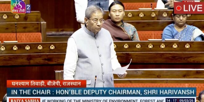 नई दिल्ली : सोमवार को दोपहर दो बजे के बाद राज्यसभा की कार्यवाही फिर शुरू होते ही पर्यावरण मंत्रालय के कामकाज पर चर्चा शुरू हुई। कार्यवाही की अध्यक्षता उपसभापति हरिवंश ने की। चर्चा की शुरुआत भाजपा सांसद घनश्याम तिवाड़ी ने की। उन्होंने अपने भाषण में पर्यावरण मंत्रालय के कार्यों और नीतियों पर बात रखी।अपने संबोधन के दौरान उन्होंने यह भी उल्लेख किया कि विपक्ष के सदस्य इस चर्चा में मौजूद नहीं दिख रहे हैं। इस महत्वपूर्ण विषय पर चर्चा के समय विपक्ष का अनुपस्थित रहना दुखद है।घनश्याम तिवाड़ी ने कहा कि भारत की संस्कृति प्रकृति से जुड़ी रही है और उन्होंने वन क्षेत्र बढ़ाने के प्रयासों की सराहना की। इस दौरान उन्होंने विपक्ष पर निशाना साधते हुए कहा कि पर्यावरण प्रदूषण के साथ राजनीतिक प्रदूषण को भी दूर करने की आवश्यकता है।उन्होंने रामसर वेटलैंड्स के विकास की विस्तार से बात की जिसके तहत इंदौर, उदयपुर जैसे शहरों को रामसर शहर घोषित करने का काम सरकार ने किया। इस चर्चा में मध्यप्रदेश से सांसद डॉ. सुमेर सिंह सोलंकी, सांसद बृज लाल, मेधा कुलकर्णी सहित कई भाजपा सांसदों ने भाग लिया। विपक्ष ने पहले ही सदन से वॉक आउट कर दिया था।