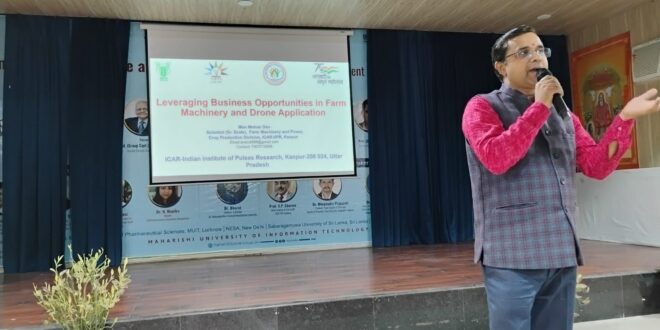 डा. मनमोहन देव (वैज्ञानिक, सीनियर स्केल, फार्म मशीनरी एंड पावर, क्रॉप प्रोडक्शन डिवीजन, ICAR–Indian Institute of Pulses Research) ने कृषि में आधुनिक मशीनरी और तकनीकी नवाचारों की भूमिका पर चर्चा की। उन्होंने बताया कि नई तकनीकों के प्रयोग से उत्पादन बढ़ाने के साथ-साथ युवाओं के लिए रोजगार और उद्यमिता के अवसर भी विकसित हो रहे हैं।