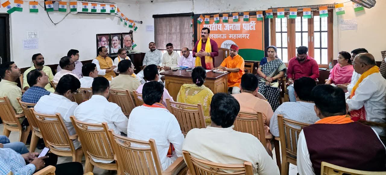 लखनऊ (टेलीस्कोप टुडे संवाददाता)। भाजपा लखनऊ महानगर अध्यक्ष आनन्द द्विवेदी की अध्यक्षता में कैसरबाग कार्यालय पर नवनियुक्त पदाधिकारियों के साथ दीनदयाल उपाध्याय प्रशिक्षण महाअभियान की चल रही मंडल कार्यशालाओं पर विस्तृत कार्य योजना बनाई गई।