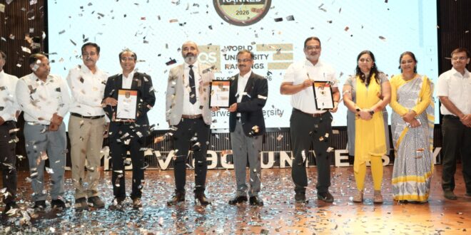 राजकोट (टेलीस्कोप टुडे संवाददाता)। गुजरात के राजकोट स्थित मारवाड़ी यूनिवर्सिटी ने बड़ी उपलब्धि हासिल करते हुए क्यूएस वर्ल्ड यूनिवर्सिटी रैंकिंग 2026 में कंप्यूटर साइंस और इन्फॉर्मेशन सिस्टम्स डोमेन विषय में स्थान बनाया है। यूनिवर्सिटी को 751–850 रैंक बैंड में जगह मिली है, जिससे यह देश के शीर्ष 40 संस्थानों में शामिल हो गई है। इस सूची में आईआईटी जैसे प्रतिष्ठित संस्थान भी शामिल हैं।