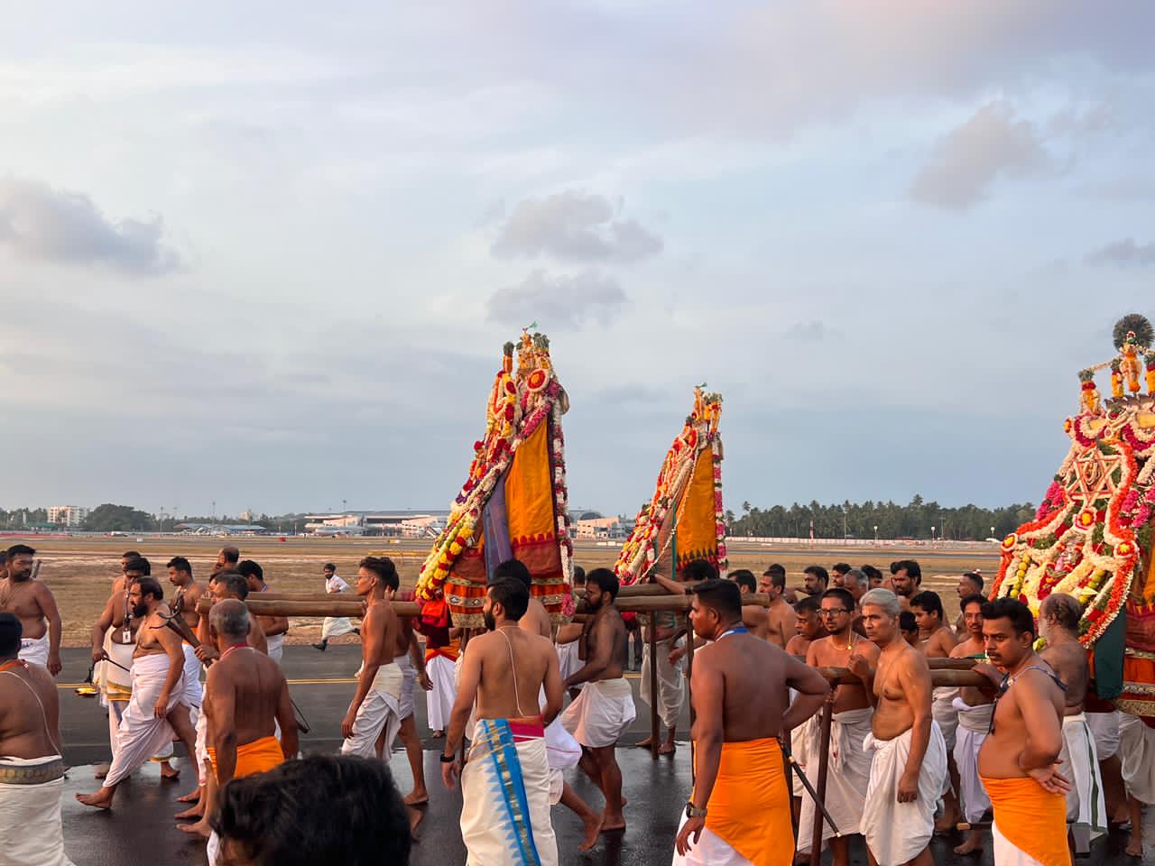 लगभग दो किलोमीटर लंबे रनवे को हर वर्ष इस पवित्र अनुष्ठान के लिए खोला जाता है। जिससे तिरुवनंतपुरम उन गिने‑चुने वैश्विक हवाई अड्डों में शामिल हो जाता है, जहाँ रनवे को श्रद्धा और धार्मिक परंपरा के सम्मान में समर्पित किया जाता है।