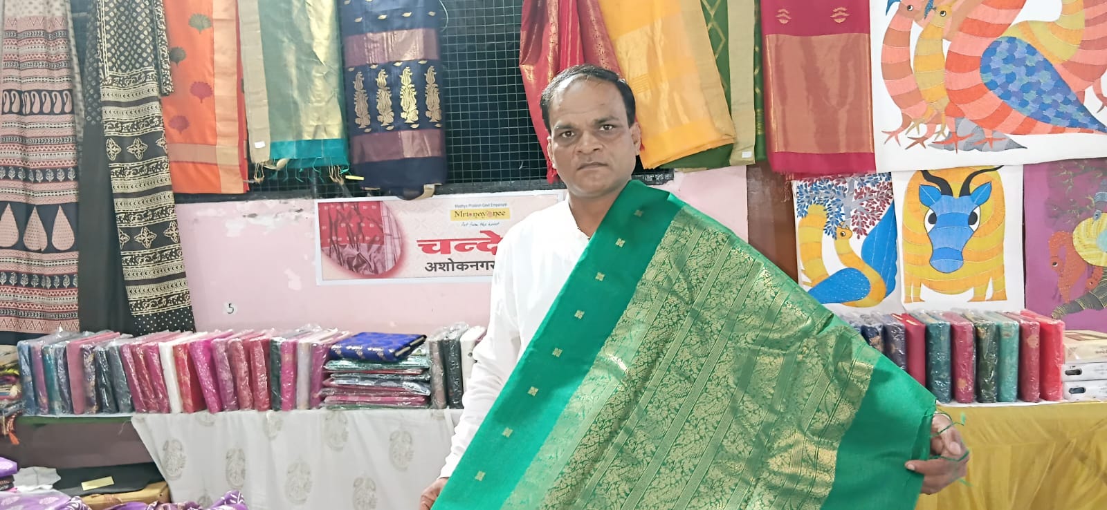 बॉलीवुड अभिनेत्री Anushka Sharma द्वारा पहनी गई चंदेरी साड़ी ने भी फैशन जगत में खास पहचान बनाई है और भारतीय हैंडलूम को नया प्रोत्साहन मिला है। प्रदर्शनी में अशोक नगर के आशाराम अहिरवार अनुष्का शर्मा चंदेरी साड़ी और दो चश्मी साड़ी भी लेकर आए हैं।