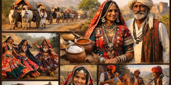 भारत की असली पहचान उसकी विविधता में छिपी है जहाँ हर समाज अपनी अलग परंपरा, भाषा और जीवनशैली के साथ इस देश को समृद्ध बनाता है। बंजारा समाज भी इसी विविधता का एक महत्वपूर्ण और आकर्षक हिस्सा है। यह समाज अपने रंगीन जीवन, जीवंत संस्कृति और संघर्षपूर्ण इतिहास के कारण विशेष पहचान रखता है। बंजारों को कई स्थानों पर लंबानी, लंबाडी या गोर भी कहा जाता है जो सदियों तक घुमंतू जीवन जीते रहे हैं। उनके काफिले बैलगाड़ियों के साथ सुदूर इलाकों तक यात्रा करते थे और व्यापार के माध्यम से विभिन्न क्षेत्रों को जोड़ते थे। उस समय जब आधुनिक परिवहन के साधन नहीं थे तब यही लोग नमक, अनाज और अन्य आवश्यक वस्तुओं को एक स्थान से दूसरे स्थान तक पहुंचाते थे। इस दृष्टि से बंजारा समाज केवल एक समुदाय नहीं अपितु भारतीय जीवन के प्रवाह को गति देने वाला एक महत्वपूर्ण माध्यम भी रहा है। उनकी यात्राएँ केवल व्यापारिक नहीं होती थीं अपितु वे सांस्कृतिक आदान-प्रदान का भी एक सशक्त माध्यम बनती थीं जिससे विभिन्न क्षेत्रों की परंपराएँ एक-दूसरे से जुड़ती चली गईं।