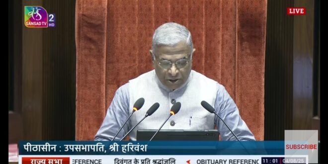 नई दिल्ली : राष्ट्रपति की ओर से नामित हरिवंश ने गुरुवार को राज्यसभा सचिवालय में उपसभापति पद के लिए नामांकन किया।वे जनता दल(यू) से सदन में दो बार निर्वाचित एवं दोनों बार राज्यसभा के उपसभापति रहे हैं।राज्यसभा में कल उपसभापति का निर्वाचन होगा। विपक्ष ने कुछ मुद्दों पर आपत्ति जाहिर करते हुए निर्वाचन प्रक्रिया से दूरी बनाने का फैसला किया है। इसका अर्थ है कि बिना विरोध हरिवंश फिर से उपसभापति बन जायेंगे।कांग्रेस नेता जयराम रमेश ने एक्स पोस्ट में कहा कि विपक्ष ने कल निर्वाचन प्रक्रिया से दूर रहने का फैसला किया है। हालांकि इसके पीछे हरिवंश का निरादर करने का कोई ईरादा नहीं है। विपक्ष को उम्मीद है कि हरिवंश अपने तीसरे कार्यकाल में विपक्ष के अनुरोधों के प्रति अधिक सहिष्णु और ग्रहणशील होंगे।जयराम रमेश ने तीन आपत्तियां जताई है। उनका कहना है कि 7 सालों से लोकसभा में उपाध्यक्ष का पद खाली है। राज्यसभा में राष्ट्रपति की ओर से मनोनीत किसी व्यक्ति को इससे पहले कभी भी उपसभापति पद के लिए विचार नहीं किया गया है। वहीं, उन्हें तीसरी बार मौका देते समय विपक्ष से विचार भी नहीं किया गया।पिछले माह राष्ट्रपति ने हरिवंश को राज्यसभा का सदस्य नामित किया था। हरिवंश नारायण सिंह का 9 अप्रैल को उपसभापति के तौर पर कार्यकाल समाप्त हो गया। तब से यह पद खाली है।उपराष्ट्रपति राज्यसभा के पदेन सभापति होते हैं। उनकी अनुपस्थिति में उपसभापति सदन का संचालन करते हैं।