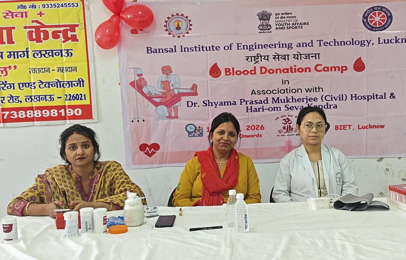 लखनऊ (टेलीस्कोप टुडे संवाददाता)। बंसल कॉलेज ऑफ इंजीनियरिंग एंड टेक्नोलॉजी (BIET) के परिसर में राष्ट्रीय सेवा योजना (एनएसएस) इकाई द्वारा गुरुवार को एक दिवसीय रक्तदान शिविर का आयोजन किया गया। यह शिविर डॉ. श्यामा प्रसाद मुखर्जी (सिविल) हॉस्पिटल और हरी-ओम् सेवा केन्द्र, लखनऊ के सहयोग से संपन्न हुआ।