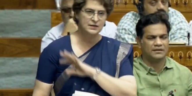 नई दिल्ली : कांग्रेस नेत्री प्रियंका गांधी वाड्रा ने गुरुवार को आरोप लगाया कि केंद्र सरकार विपक्ष को धर्मसंकट में डालकर मनमानी करना चाहती है। उन्होेंने कहा कि महिला आरक्षण की बात कह कर सरकार परिसीमन के माध्यम से चुनावी हित साधना चाहती है।प्रियंका वाड्रा ने गुरुवार को लोकसभा में परिसीमन और उसके माध्यम से देश में महिला आरक्षण लागू किए जाने से जुड़े संविधान संशोधन एवं दो अन्य विधेयकों पर जारी चर्चा में भाग लिया। उन्होंने कहा कि सरकार देश को गुमराह कर रही है और कांग्रेस पार्टी केंद्र सरकार के इस प्रयास का डटकर विरोध करेगी।उन्होंने कहा कि सरकार 2011 की जनगणना के आधार पर परिसीमन करना चाहती है ताकि वह जातिगत जनगणना के आंकड़ों के आधार पर प्रतिनिधित्व सुनिश्चित करने से बच सके। उन्होंने कहा कि सरकार लोकसभा की सीटों में 50 प्रतिशत का इजाफा कर रही है लेकिन इससे जुड़े अधिनियम में यह कैसे किया जाएगा, इसके बारे में साफ नहीं है। सरकार केवल खोखले आश्वासन दे रही है।प्रियंका गांधी ने कहा कि विधेयक में संसद का 50 प्रतिशत विस्तार प्रस्तावित है लेकिन इसके लिए किसी ठोस प्रक्रिया के बारे में कुछ नहीं लिखा गया है। इतने बड़े परिवर्तन में क्या नियम होंगे, कैसे किया जाएगा, इस बारे में विधेयक में कोई जिक्र नहीं किया गया है।उन्होंने कहा कि संसद में देश के हर राज्य की भागीदारी 1971 में निश्चित तौर पर तय की गई और इस पर बदलाव लाने पर रोक लगाई गई थी, लेकिन इस विधेयक के जरिए यह सब बदलने जा रहा है। प्रधानमंत्री और उनके अन्य मंत्री के खोखले वादों के बावजूद यह निश्चित है कि संसद में प्रदेशों के वजन में बदलाव किया जाएगा।प्रियंका ने कहा कि असम में सरकार ने विपक्षी नेताओं के क्षेत्रों को काटा और अपने राजनीतिक फायदे के लिए मनचाहे तरीके से नई सीमाएं तय कीं। यही काम अब पूरे देश में करने की तैयारी की जा रही है। परिसीमन आयोग में सरकार की ओर से चुने गए तीन लोग पूरे देश के राज्यों के वजूद, उनकी भागीदारी तय करेंगे।उन्होंने कहा, “लोकतंत्र को खत्म करने की शुरुआत सरकार ने संस्थाओं को कब्जाने से शुरू की थी लेकिन अब लोकतंत्र पर खुला वार होने जा रहा है।”