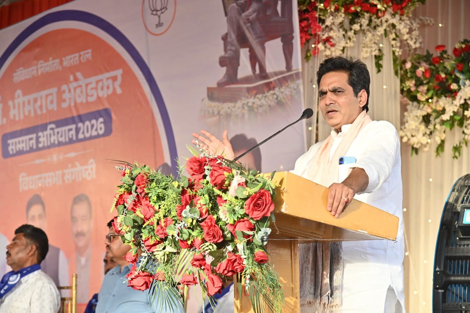 मुख्य अतिथि पंकज सिंह ने अपने संबोधन में डॉ. भीमराव आंबेडकर के विचारों को राष्ट्र निर्माण की आधारशिला बताते हुए कहा कि बाबासाहेब केवल किसी एक वर्ग के नहीं, बल्कि पूरे राष्ट्र के मार्गदर्शक हैं। उन्होंने कहा कि नरेंद्र मोदी और योगी आदित्यनाथ के नेतृत्व में सरकार ‘अंत्योदय’ के लक्ष्य को साकार करने के लिए प्रतिबद्ध है। उन्होंने युवाओं से संविधान की मर्यादाओं का पालन करने और राष्ट्रहित को सर्वोपरि रखने का आह्वान किया।