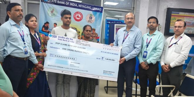 लखनऊ (टेलीस्कोप टुडे संवाददाता)। रेलवे कर्मियों के प्रति अपनी अटूट प्रतिबद्धता को पुनः सशक्त करते हुए, भारतीय स्टेट बैंक की शाखा- मिया गंज, उन्नाव ने रेलवे वेतन पैकेज के व्यक्तिगत दुर्घटना बीमा (पीएआई) दावा के अंतर्गत एक दिवंगत रेलवे कर्मी के परिवार को 1 करोड़ का चेक प्रदान किया।