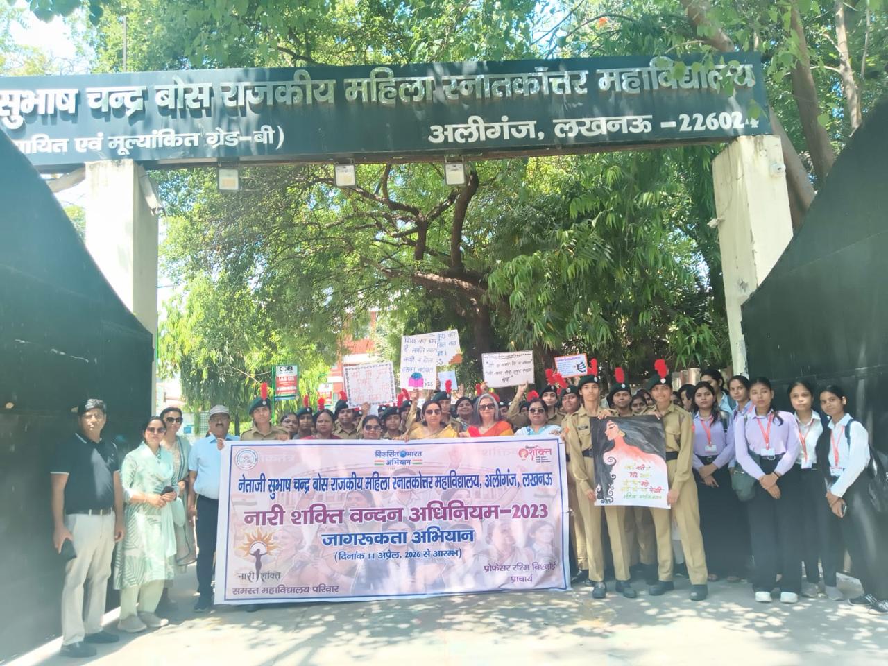 लखनऊ (टेलीस्कोप टुडे संवाददाता)। नेताजी सुभाष चंद्र बोस राजकीय महिला स्नातकोत्तर महाविद्यालय, अलीगंज में नारी शक्ति वंदन अधिनियम के समर्थन में छात्राओं द्वारा जागरूकता पदयात्रा निकाली गई। इस पदयात्रा का उद्देश्य महिलाओं के अधिकारों के प्रति समाज में जागरूकता बढ़ाना और छात्राओं को सशक्त बनाना रहा।
