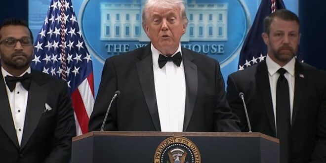 वाशिंगटन। राष्ट्रपति डोनाल्ड ट्रंप ने कहा कि अमेरिकी गणतंत्र पर हमला नया नहीं है। इससे पहले भी राष्ट्र को लहूलुहान किया गया है। उन्होंने देशवासियों से आपसी मतभेदों को शांतिपूर्वक सुलझाने का आह्वान भी किया।वाशिंगटन डीसी में शनिवार शाम अभेद्य किलेबंदी के बीच चल रहे व्हाइट हाउस कॉरेस्पोंडेंट्स डिनर के दौरान पर कार्यक्रम स्थल के बाहर हुई गोलीबारी में पूरी तरह सुरक्षित ट्रंप ने इस घटना पर चिंता जताते हुए संघीय एजेंट्स और कानून प्रवर्तन एजेंसियों की तारीफ की।फॉक्स न्यूज की रिपोर्ट के अनुसार, राष्ट्रपति डोनाल्ड ट्रंप ने इस घटना करीब 30 मिनट बाद व्हाइट हाउस के ब्रीफिंग रूम से संवाददाता सम्मेलन में कहा कि वार्षिक डिनर का आयोजन वाशिंगटन हिल्टन होटल के बॉलरूम में किया गया था।इस दौरान कई तरह के हथियारों से लैस एक व्यक्ति सुरक्षा घेरे की तरफ बढ़ा। एजेंट्स और अन्य सुरक्षा कर्मचारियों ने संदिग्ध को आगे बढ़ने से रोका और उसे हिरासत में ले लिया गया। उन्होंने कहा कि संदिग्ध ने एक एजेंट को बहुत करीब से गोली मारी। इस अधिकारी के बुलेटप्रूफ जैकेट पहने होने कारण अनहोनी टल गई। अधिकारी पूरी तरह ठीक है।व्हाइट हाउस के ब्रीफिंग रूम में ट्रंप के संवाददाता सम्मेलन में हिस्सा लेने के लिए कई पत्रकार तो सीधे हिल्टन होटल से पहुंचे। ट्रंप ने संवाददाता सम्मेलन से पहले संदिग्ध की तस्वीरें और वीडियो ‘ट्रुथ सोशल’ पर पोस्ट किए। ट्रंप ने इस घटना को कार्यक्रम के मूल उद्देश्य पर सीधा हमला भी बताया। उन्होंने कहा, “यह कार्यक्रम अभिव्यक्ति की स्वतंत्रता को समर्पित था। इसका मकसद दोनों पार्टियों के सदस्यों और प्रेस के सदस्यों को एक साथ लाना था।ट्रंप ने कहा कि इस घटना से साफ है कि सुरक्षा व्यवस्था को और भी कड़ा करने की जरूरत है। उन्होंने कहा कि वाशिंगटन हिल्टन होटल सुरक्षित इमारत नहीं है। उन्होंने कहा कि इससे अच्छा तो व्हाइट हाउस का निर्णाधीन बॉलरूम है। यहां ड्रोन प्रूफ सुरक्षा और कांच की बुलेट प्रूफ दीवारें होंगी।उन्होंने इस गोलीबारी से पैदा हुए डर को अमेरिका पर मंडरा रहे खतरों के एक बड़े सिलसिले से भी जोड़ा। उन्होंने कहा, “पिछले कुछ सालों में यह पहली बार नहीं है जब हमारे गणतंत्र पर किसी ऐसे हमलावर ने हमला किया हो, जो किसी की जान लेने के इरादे से आया हो।” उन्होंने अमेरिकियों से आग्रह किया, ” दिल से यह संकल्प लें कि आपसी मतभेदों को शांतिपूर्ण तरीके से सुलझाएंगे।” ट्रंप ने कहा, यह डिनर अगले 30 दिनों के भीतर फिर से आयोजित किया जाएगा। यह और बेहतर और ज्यादा शानदार होगा।”अधिकारियों के अनुसार, संदिग्ध की पहचान 31 वर्षीय कोल एलन के रूप में हुई है। कानून प्रवर्तन के अनुसार, एलन संभवतः वाशिंगटन हिल्टन होटल में
