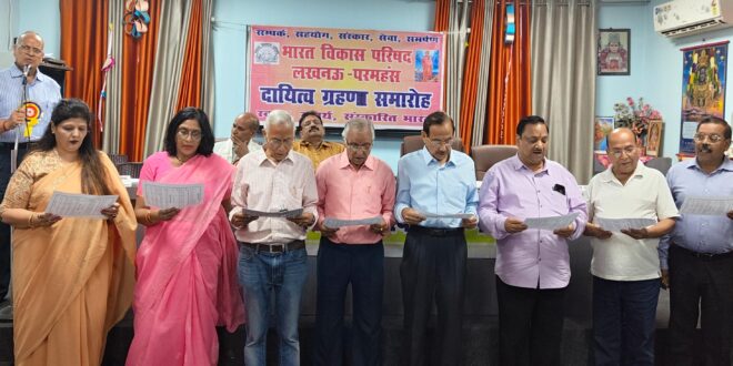 लखनऊ (टेलीस्कोप टुडे संवाददाता)। भारत विकास परिषद, परमहंस शाखा की 37वीं आम सभा के दौरान नवगठित कार्यकारिणी ने दायित्व ग्रहण करते हुए शपथ ली। रविवार को निराला नगर स्थित सरस्वती कुंज में आयोजित समारोह की शुरुआत अतिथियों के स्वागत एवं दीप प्रज्वलन से हुई। इसके बाद ‘वंदे मातरम्’ का सामूहिक गायन, दायित्वधारियों का परिचय तथा परिषद की गतिविधियों की संक्षिप्त जानकारी दी गई। वार्षिक आख्या और आय-व्यय विवरण सचिव सुरेंद्र कुमार मिश्रा व कोषाध्यक्ष संतोष गुप्ता ने प्रस्तुत किया।